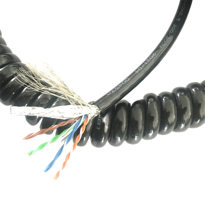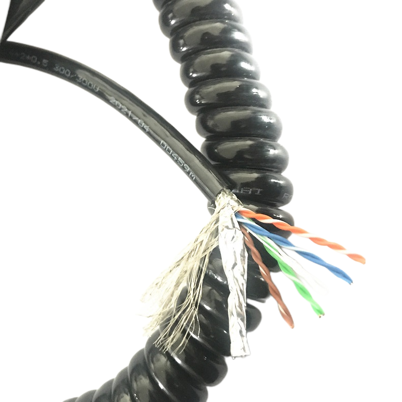 Coiled Ethernet + Power Cable | Spring-Type Retractable Cable for Industrial Equipment