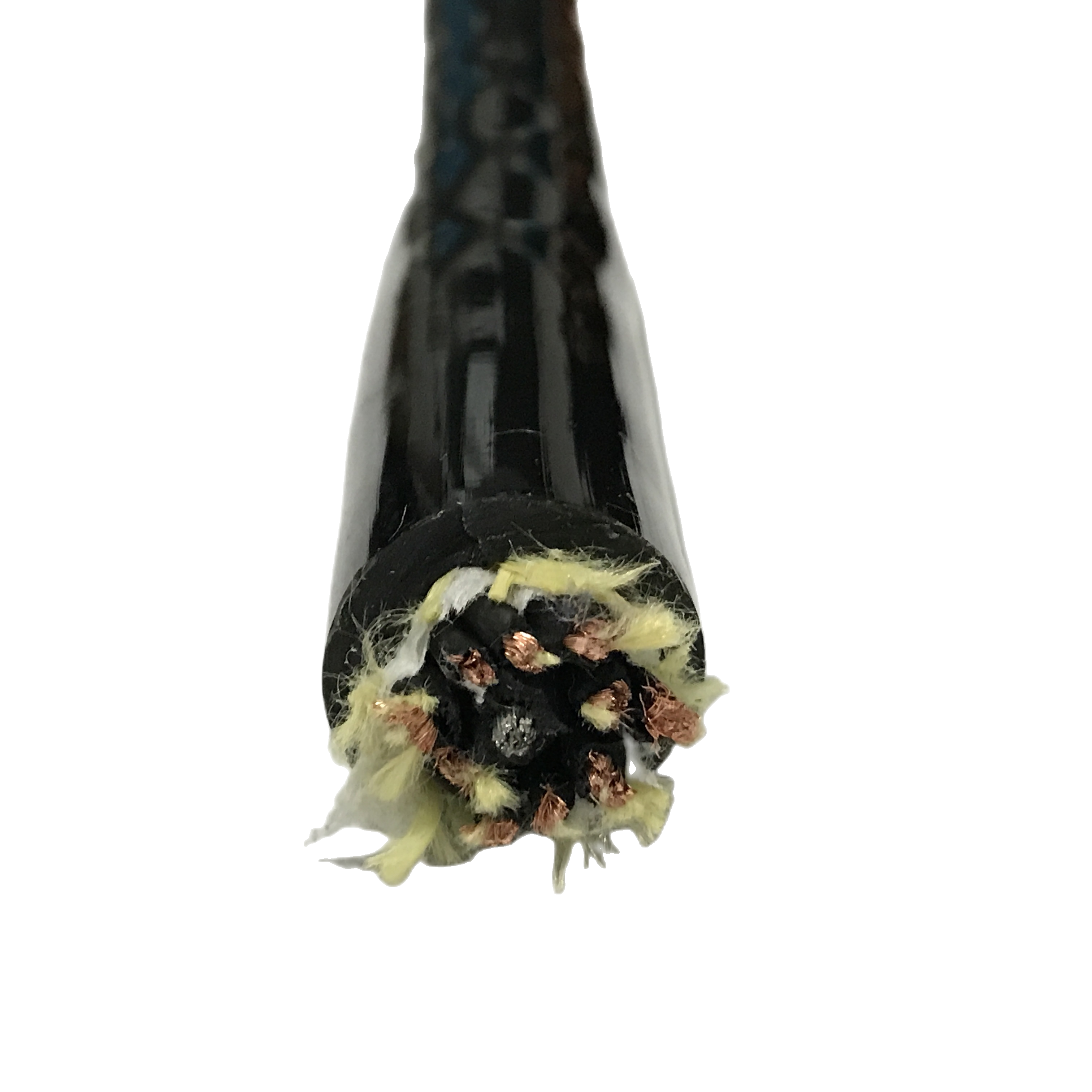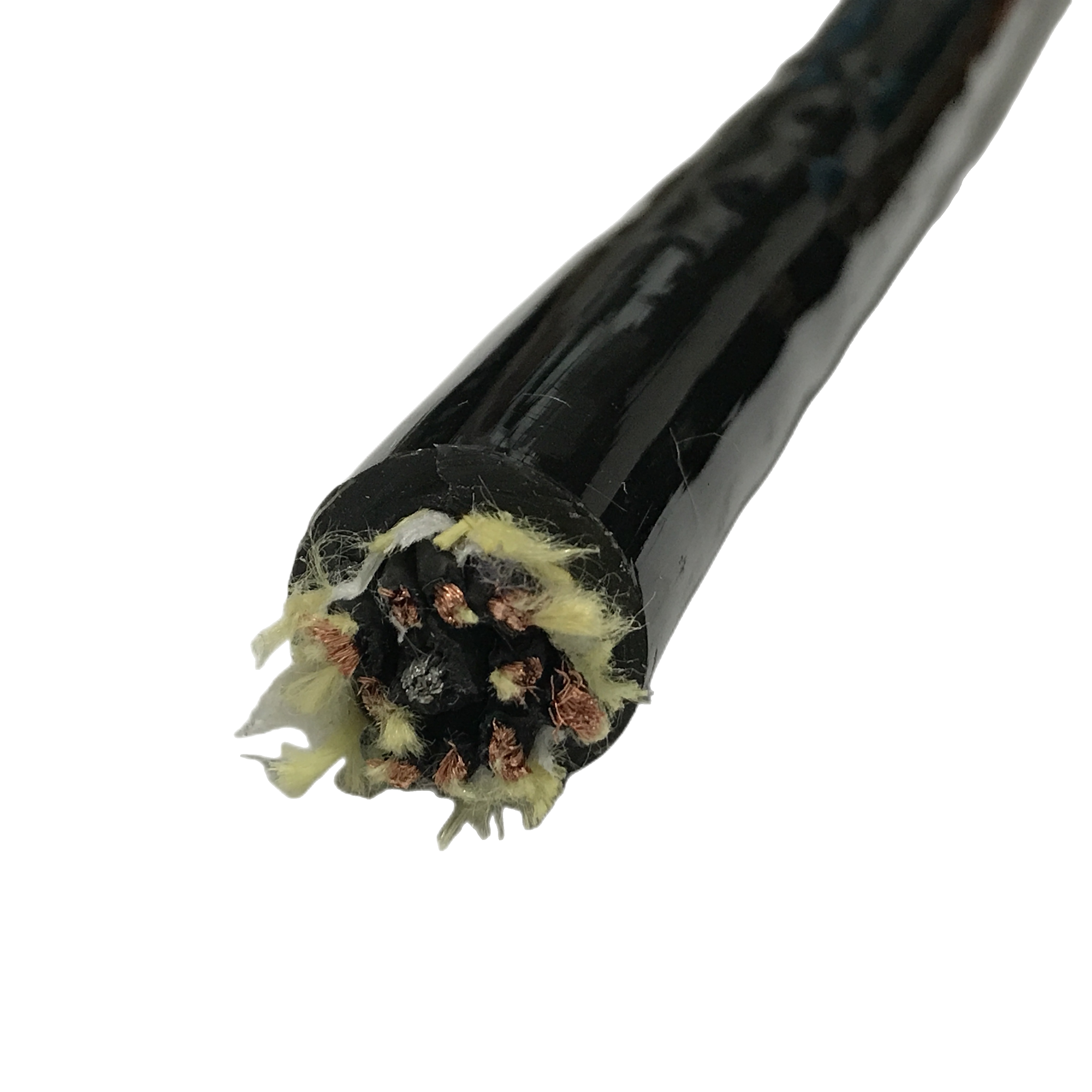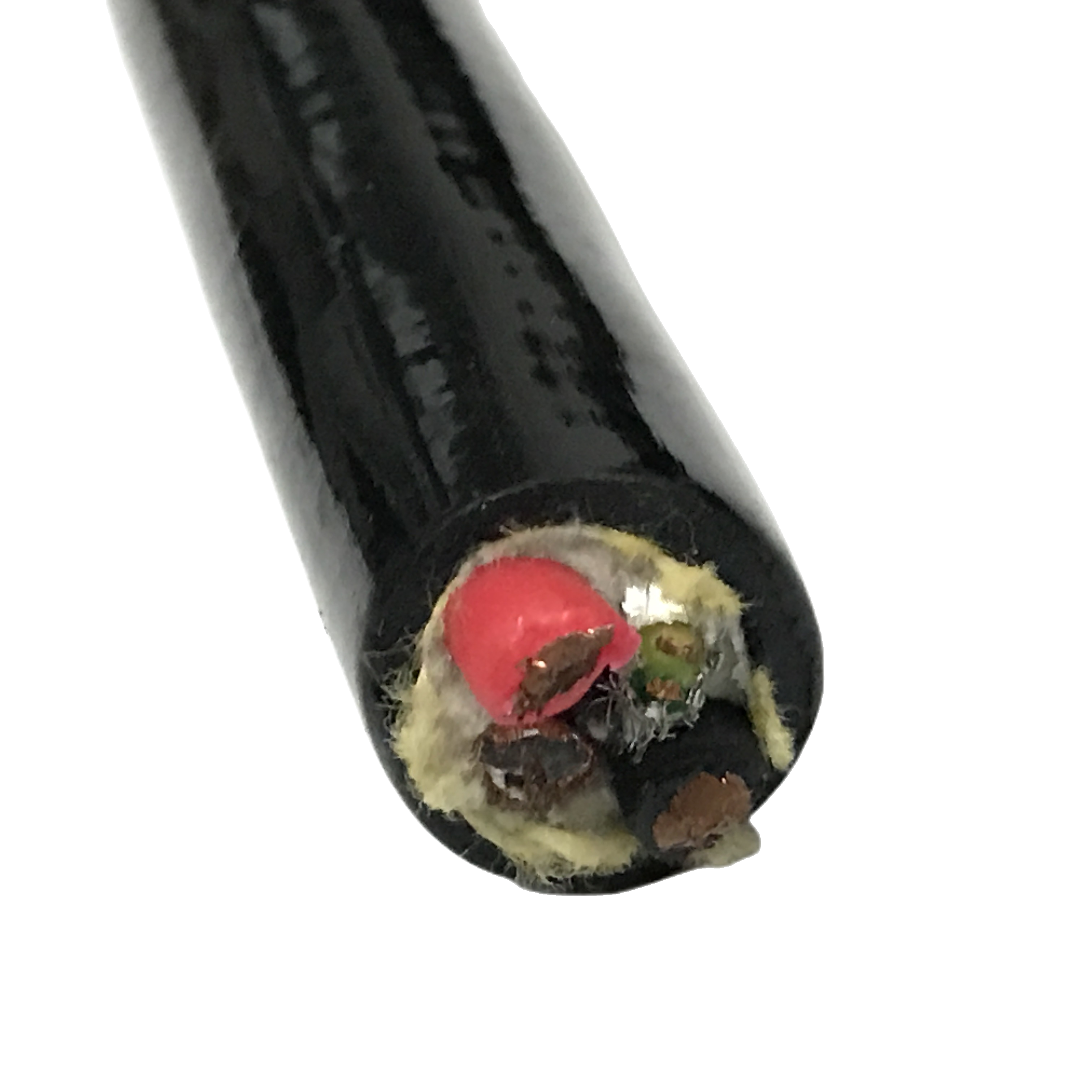 Nuclear plant inspection imposes three additional requirements beyond standard pipeline inspection: (1) radiation resistance — the cable jacket must not become brittle or conductive under gamma radiation doses typical of plant inspection (typically 100 Gy cumulative). Polyether PUR has good radiation resistance to approximately 200 Gy. For doses above 200 Gy, specify the RST-CRC-OEM radiation-hardened compound. (2) Halogen-free jacket — required by most nuclear plant electrical codes to prevent corrosive HF/HCl gas generation in a cable fire event. RST-CRC nuclear variant uses a halogen-free PUR compound. (3) Full material traceability — nuclear plant safety authority documentation requires material certificates traceable to the raw polymer batch. RST-CRC nuclear variant includes full batch-level material traceability documentation.
